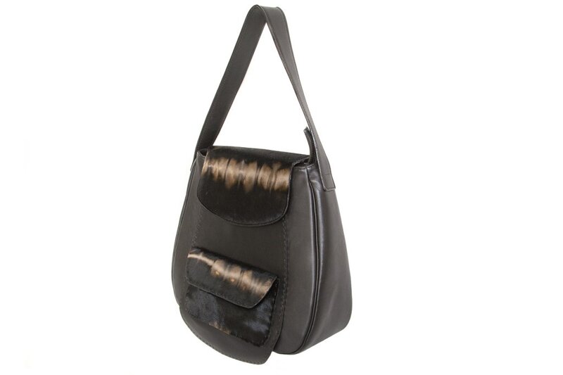 Marghi adattissima ad un Look ricercato. La pattina, che si trova in testa alla borsa, è in cavallino ed ha una chiusura magnetica. La falda in pelle di vitello, sovrapposta e cucita a mano al pannello frontale, oltrepassa la lunghezza della borsa ed è dotata di una tasca a toppa con lembo pattina in cavallino, cucita a mano con punto selleria. La fodera interna è in pelle di cinghialino di colore a contrasto. La tasca interna chiusa da zip. Lo studio dei pellami utilizzati, mescolati ad arte per la realizzazione, non passa certamente inosservato.