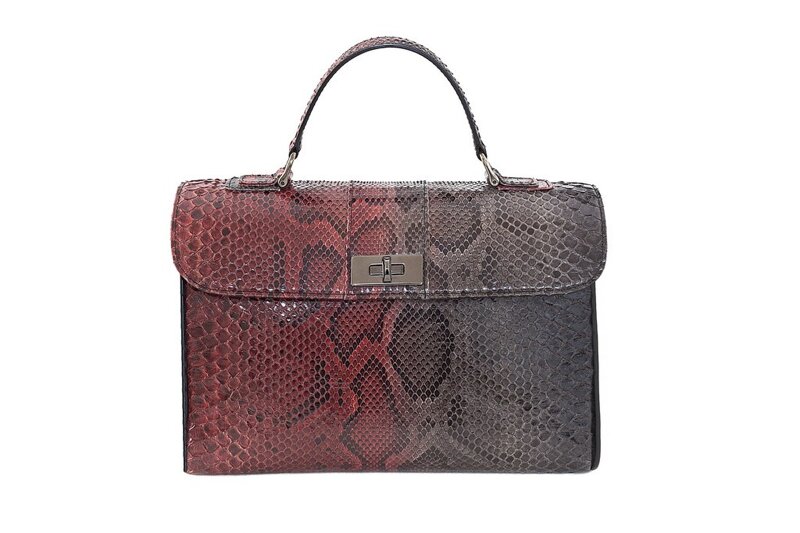 Manico semirigido, in vera pelle di pitone, attaccato in testa alla borsa da due anelli in metallo a forma di ferro di cavallo. La tracolla, in vera pelle di pitone, è rimovibile e può essere attaccata agli anelli del manico, grazie ai due moschettoni che si trovano agli estremi della stessa. La chiusura posta al centro del pannello frontale è a girello in metallo.