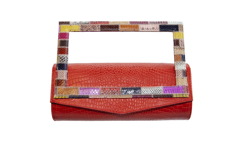 Pochette cilindrica realizzata in vera pelle incorniciata da un unico manico rettangolare in biscia. Passare inosservate è impossibile. I colori, il suo stile e la sua comodità rendono la borsa perfetta per completare il look di una serata all'insegna del divertimento. Da portare a spalla o a mano grazie alla catena metallica progettata appositamente per dare alla borsa una duplice vestibilità.
